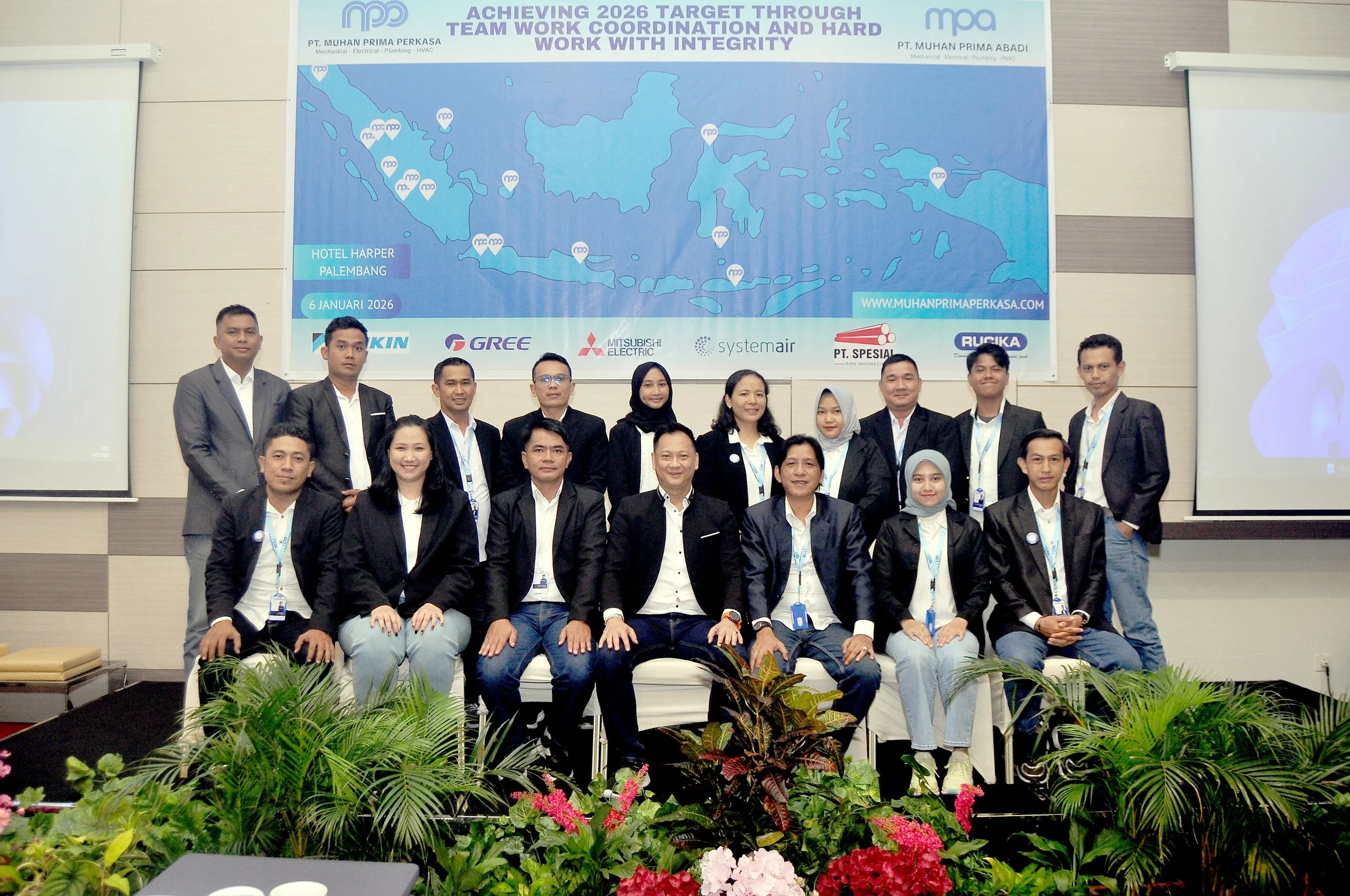 PALEMBANG – Mengawali tahun 2026 dengan semangat baru, PT. Muhan Prima Perkasa sukses menyelenggarakan rangkaian agenda tahunan yang menggabungkan evaluasi strategis, penguatan visi, dan kebersamaan tim. Rangkaian acara yang berlangsung pada 6-7 Januari 2026 ini menjadi momentum krusial bagi perusahaan untuk memantapkan posisi sebagai mitra terpercaya di bidang MEP (Mechanical, Electrical, Plumbing) dan HVAC.